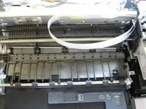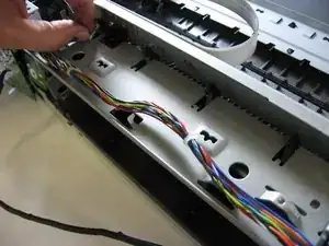 Аккуратно отсоедините провода, соединяющие корпус с внутренними деталями принтера.
