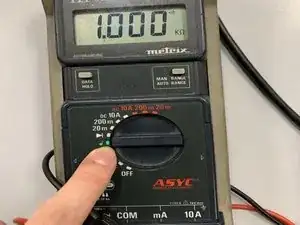 Установите мультиметр на звуковой символ, означающий тест на целостность, и вы должны увидеть звуковой символ на экране.