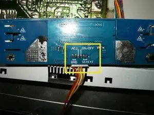Вот ленточный кабель, идущий от передней панели кнопок, как он проложен и где подключается.