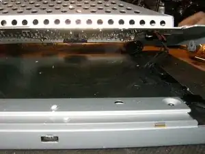 После того как четыре винта удалены и передняя рамка отщёлкнута, задняя крышка просто снимается.
