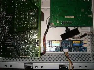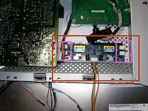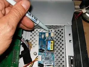 Поместите инвертор с липучкой в корпус. После правильной установки вставьте четыре разъёма подсветки в инвертор.