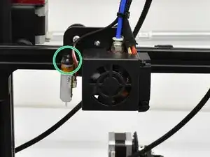Установите датчик, как показано, со стороной подключения, обращённой к хотэнду. Используйте шестигранник M2 для установки предоставленных винтов M3x6.
