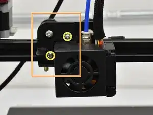 Используя шестигранник M2, снимите 2 винта с потайной головкой, держащие кожух хотэнда.