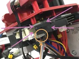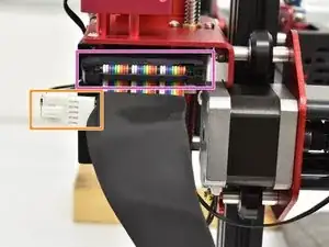 2‑контактная белая вилка в Z+ (соединение ближе всего к ленточному кабелю). С той же точки зрения, что на фото, используйте правые 2 контакта.
