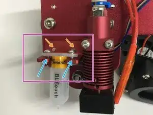 Теми же винтами прикрепите кронштейн BL Touch, как показано.