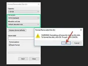 Критично установить размер кластера на «По умолчанию...» или 4096.