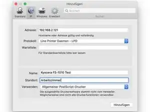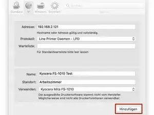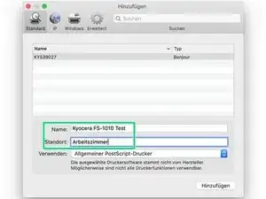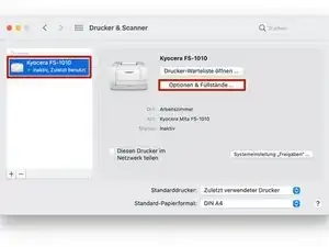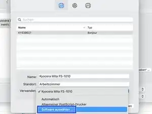 Выберите «Drucken» в поле Produkt Funktion и «FS-1010» в поле Produkt.