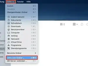 Откройте новое окно Finder и в строке меню выберите «Перейти» -> «Открыть папку...».
