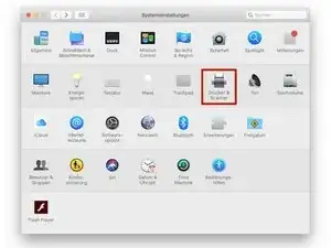 В «Системных настройках» нажмите на значок «Принтеры и сканеры».