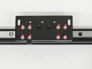 Установите пластину каретки X. Шестигранником M2.5 вкрутите все 8 винтов на несколько витков до полного затягивания, затем затяните их крест-накрест.