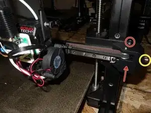 Ослабьте винты вверху и внизу сборки натяжителя X, чтобы позволить регулировку натяжения ремня.