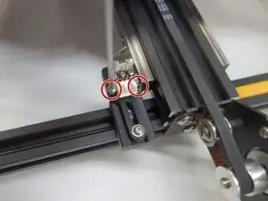 Используйте болты с потайной головкой M3x12 для регулировки положения концевого выключателя так, чтобы наконечник сопла находился на одном уровне с передним краем стола при срабатывании концевого выключателя