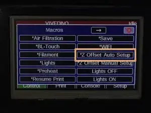 Macro> Автоустановка смещения по Z> EZ Z Offset. Следуйте подсказкам — после этого смещение Z будет откалибровано и сохранено.