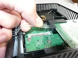 Отвинтите оба винта, удерживающие прижимную пластину и жёсткий диск.