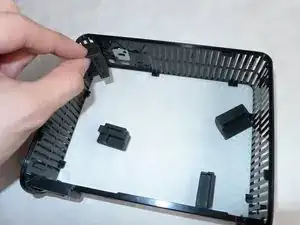 Снимите 4 резиновых заглушки с пластикового каркаса в каждом углу.