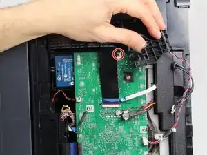 Удалите один винт T8 длиной 8 мм под шлейфом, поворачивая его против часовой стрелки с помощью отвертки T8-Torx.