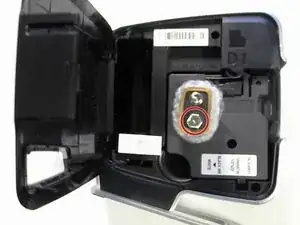 Удалите оригинальный аккумулятор. Он расположен рядом с петлей устройства. Отсек для аккумулятора открывается с помощью защелки, обозначенной красным.