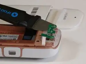 Используйте инструмент для открытия iFixit, чтобы аккуратно пройти между белым и бежевым корпусом вокруг устройства.