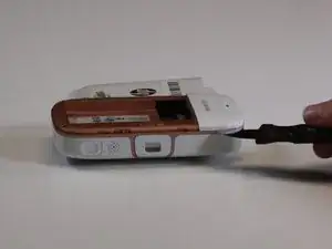 Используйте отвертку JIS #00, чтобы удалить один черный винт рядом с видоискателем.