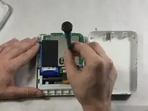 Аккуратно и медленно надавливайте снизу на аккумулятор через пластик, чтобы сдвинуть его.
