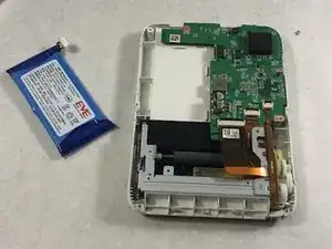 Удалите три винта Phillips №0 длиной 4 мм, удерживающие металлический щит, закрывающий аккумулятор.