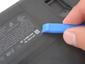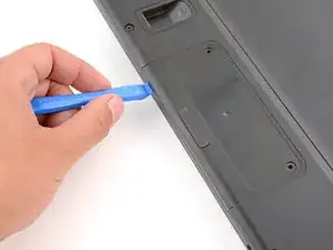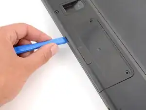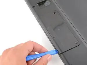 Вставьте инструмент для открывания в шов между крышкой аккумулятора и задним ребром клавиатуры.