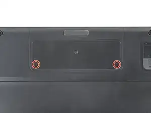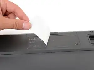 Наклейка Logitech скрывает два винта крышки аккумулятора.