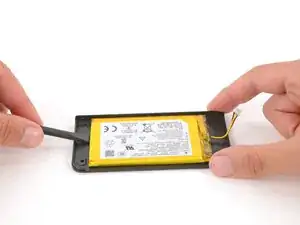 Осторожно подведите плоский конец лопатки под один из коротких торцов аккумулятора и приподнимите, чтобы отделить клей.