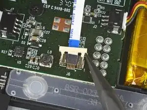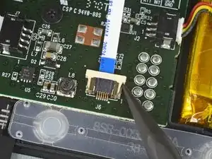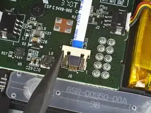 Используйте тупые пинцеты, чтобы захватить межсоединительный кабель за синюю часть возле разъема.