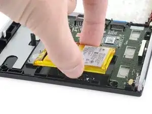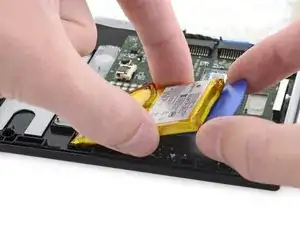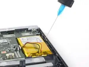 Подождите одну минуту, чтобы изопропиловый спирт ослабил клей под аккумулятором.