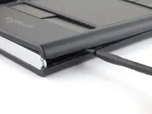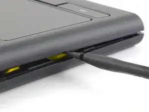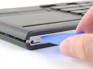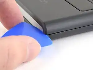 Вставьте пластиковую лопатку примерно на 2 мм в зазор между верхней и нижней крышками в правом нижнем углу клавиатуры.