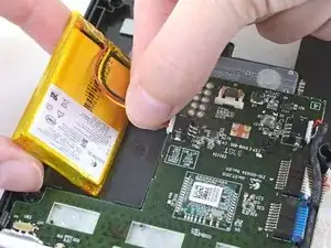 Внутренний аккумулятор расположен ближе к правому краю клавиатуры. Следите, чтобы не проколоть и не согнуть аккумулятор лопаткой — проколотый или согнутый аккумулятор может протечь опасными химикатами или вызвать тепловое событие.