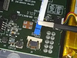 Используйте остроконечный конец лопатки, чтобы сдвинуть фиксирующий язычок разъема межсоединительного кабеля в сторону кабеля.
