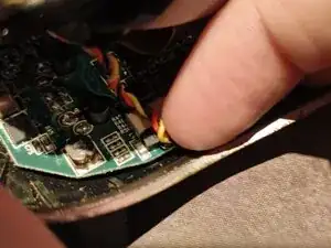 Сначала отсоедините разъём JST, осторожно потянув за кабель или используя кончик лопатки, чтобы оттолкнуть чёрный разъём от белого гнезда.
