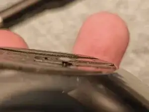 Наконец, поднимите оранжевый ленточный кабель из пластиковой защёлки, удерживающей его, аккуратно сдвинув его из положения.