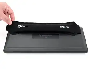 Нагрейте iOpener и положите его на верхний край наклейки на одну минуту.