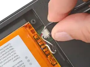 Используйте пинцет с изогнутыми наконечниками, чтобы плотно захватить разъём аккумулятора.