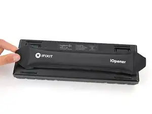 Нагрейте iOpener и положите его на наклейку Logitech на одну минуту.