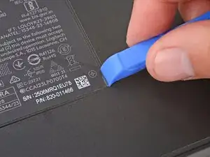 Используйте инструмент для вскрытия, лопатку или ноготь, чтобы поддеть угол наклейки до тех пор, пока её не получится захватить пальцами.
