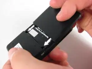 Нажмите пальцем на аккумулятор и поднимите вверх, чтобы выжать аккумулятор из корпуса.
