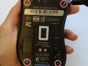 Снимите четыре винта 1,2 мм в каждом углу мыши с помощью отвертки Torx T6.
