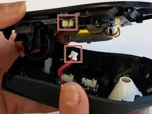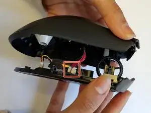 Убедитесь, что печатная плата отключена, как показано, прежде чем разделять две половины мыши.