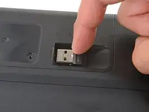 Если в отсеке крышки хранится USB‑приёмник, выдвиньте его пальцем и извлеките.