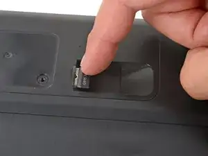 Аккуратно сдвиньте крышку вправо, чтобы получить доступ к разъёму аккумулятора в левой части выемки.