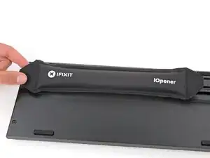 Нагрейте iOpener и положите его на стикер Logitech на одну минуту.