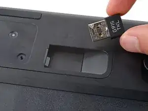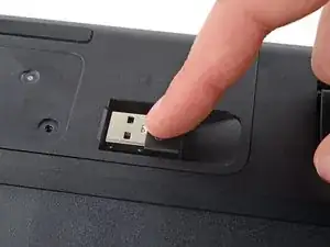 Если у вас есть USB‑приёмник, хранящийся в отделении крышки аккумулятора, выдвиньте его пальцем и извлеките.
