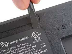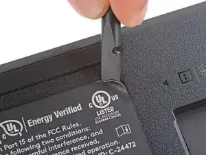 Разогрейте iOpener и положите его на наклейку Logitech на одну минуту.