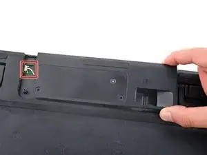 Положите новый аккумулятор в выемку в клавиатуре так, чтобы кабель был у левого края, рядом с разъёмом аккумулятора.