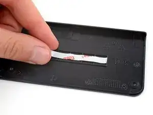 Вырежьте кусок двустороннего скотча так, чтобы он поместился на ряд квадратиков внутри крышки аккумулятора.