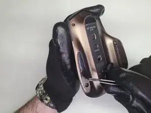 Снимите две скользящие подошвы пинцетом, чтобы открыть винты под ними.